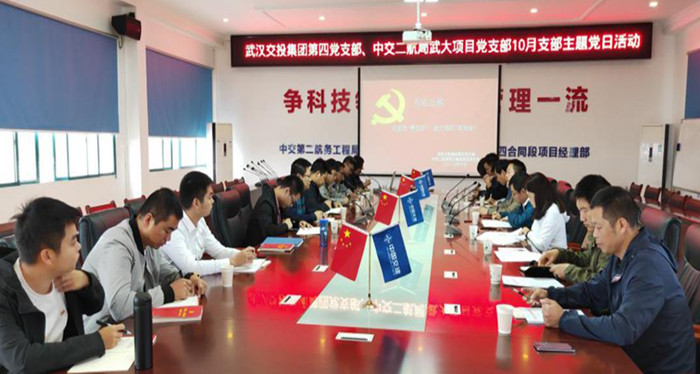為提高黨員干部的科學管理水平,促進黨員干部勇于擔當、積極作為、拼搏趕超、不斷提升自身的管理水平和綜合素質,10月16日上午武漢交投集團第四黨支部聯(lián)合中交二航局武大高速公路4標段黨支部,在項目部會議室開展了以“創(chuàng)建黨員‘責任區(qū)’、助力武漢‘軍運會’”為主題的黨日活動。雙方黨員、發(fā)展對象及群眾代表積極參加黨日活動。