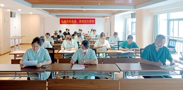 為深入貫徹落實省市“干部素質提升年”部署要求,緊扣“六大行動”工作舉措,進一步建強基層黨組織,優化干部隊伍,持續為康養公司高質量發展提供堅強組織保障和有力干部人才支撐,6月23日,柴泊湖武漢康養中心組織開展護理理論知識考核,本次護理人員考核全員覆蓋,旨在全面檢驗護理人員對核心照護理論、操作規范、應急預案及長者健康管理等專業知識的掌握與應用能力。考核內容緊貼一線服務需求,覆蓋日常照護全流程要點。